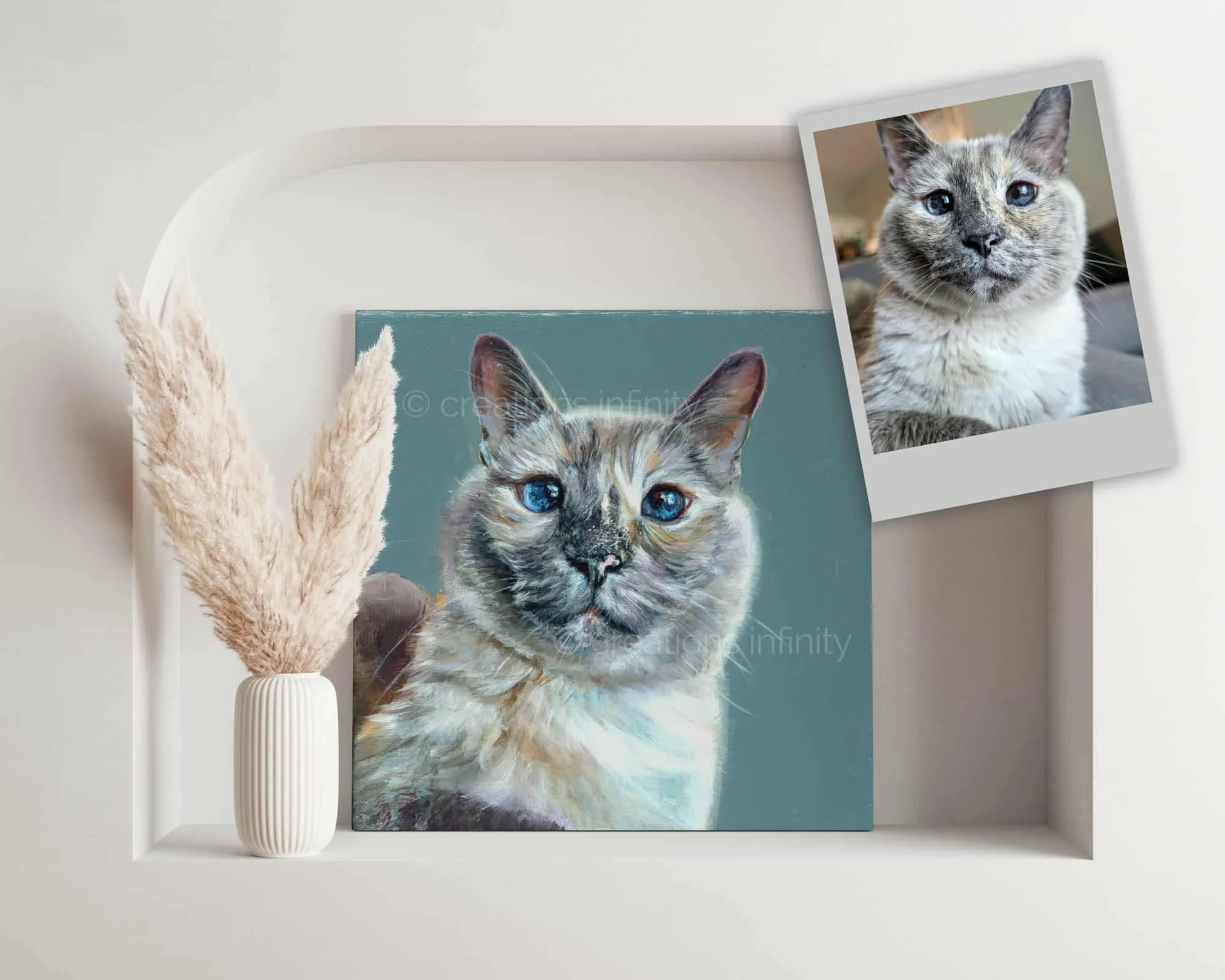 I offer custom pet portrait paintings, as well as other custom art. Stickers, magnets, digital designs & art – we can make almost anything happen. Let’s do it!